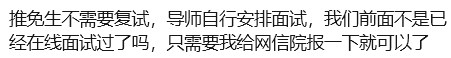 9月23号,9:07信工所发了复试通知,9:10分接受。看到各位群友都开始鸽子链启动,难免对自己的操作有所遗憾,应该找强com和弱com的学校,而不是联系两个老师,最后难以抉择。