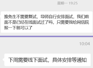 6.22 | 山大网安院A老师 | 回复了让我关注他的课题组,我说对这他的研究方向没有很多知识,然后就不回我了(可能是觉得我在拒绝他?) |